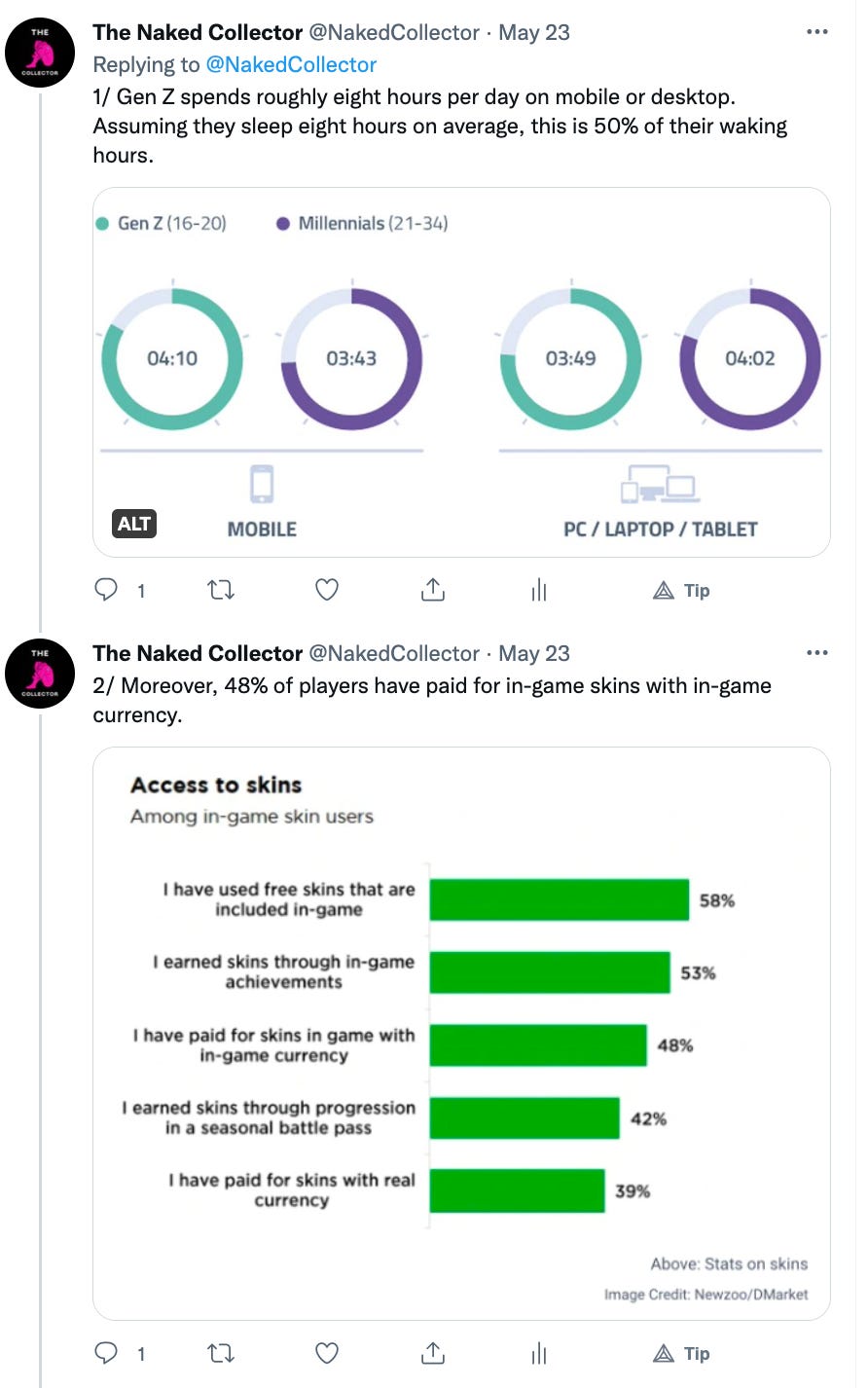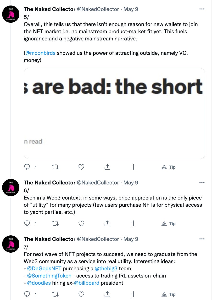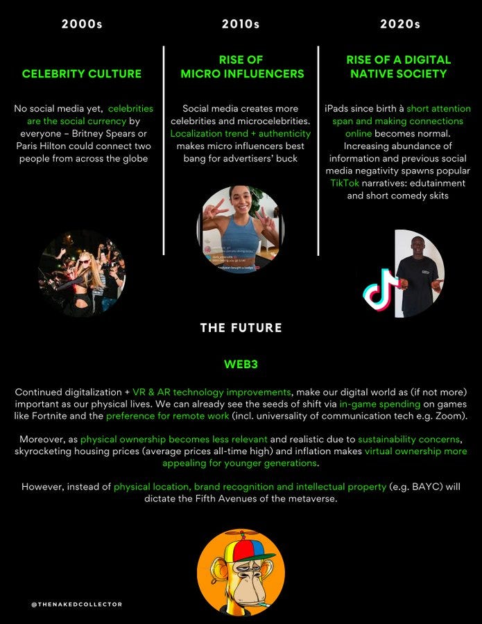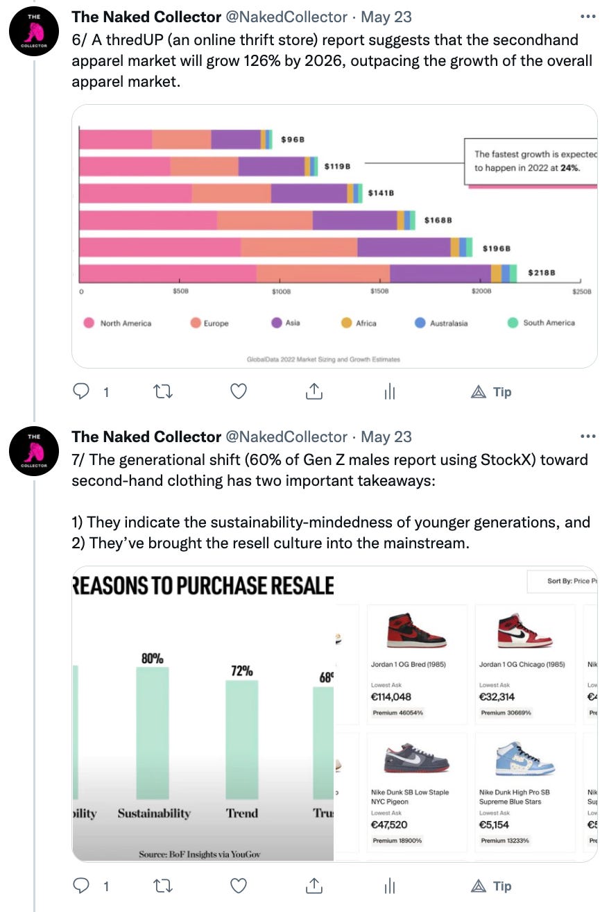 As you can see we are still in the infancy stage of fashion NFTs. Brands are dabbling in web3 trying to find themselves in the new arena. There are no right answers or established ways of operating. We try to inform and educate the web3 community and brands via our content. For more content like this follow us on Substack and Twitter @NakedCollector.