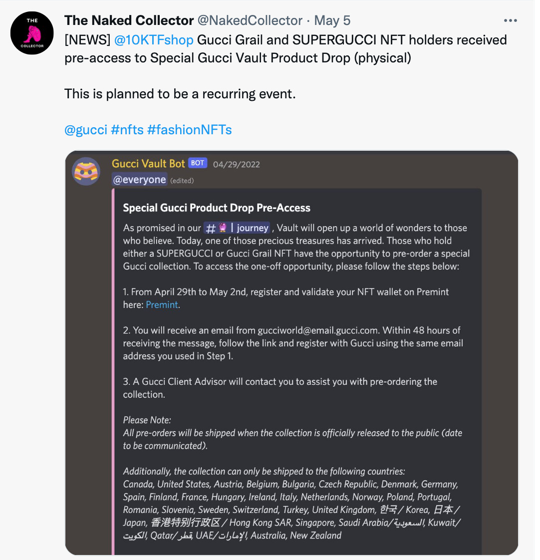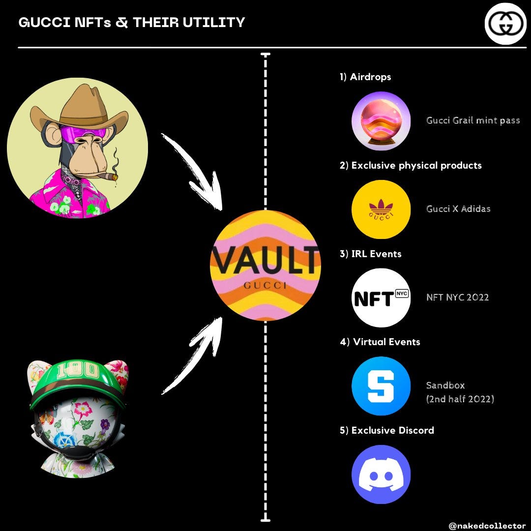 Gucci NFTs (SUPERGUCCI and Gucci Grail) received access to a Gucci Vault (Gucci’s experimental concept space) product drop ahead of the public. However, the products themselves weren’t free and there were claims of some NFT holders not getting access despite the claim. Looking at the Gucci Vault Discord there are still many things to improve when it comes to NFT community management. Growing pains are part of the process.