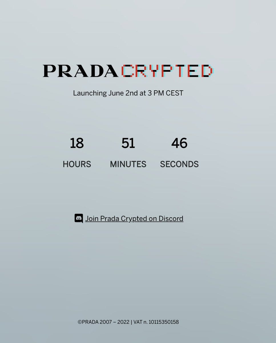 Prada Timecapsule offers new collection every Thursday available for 24 hours only (taking a page out of Supreme’s book). Buyers of these drops will be gifted NFTs along with the physical clothes. The utility (if any) for these NFTs is still a mystery.