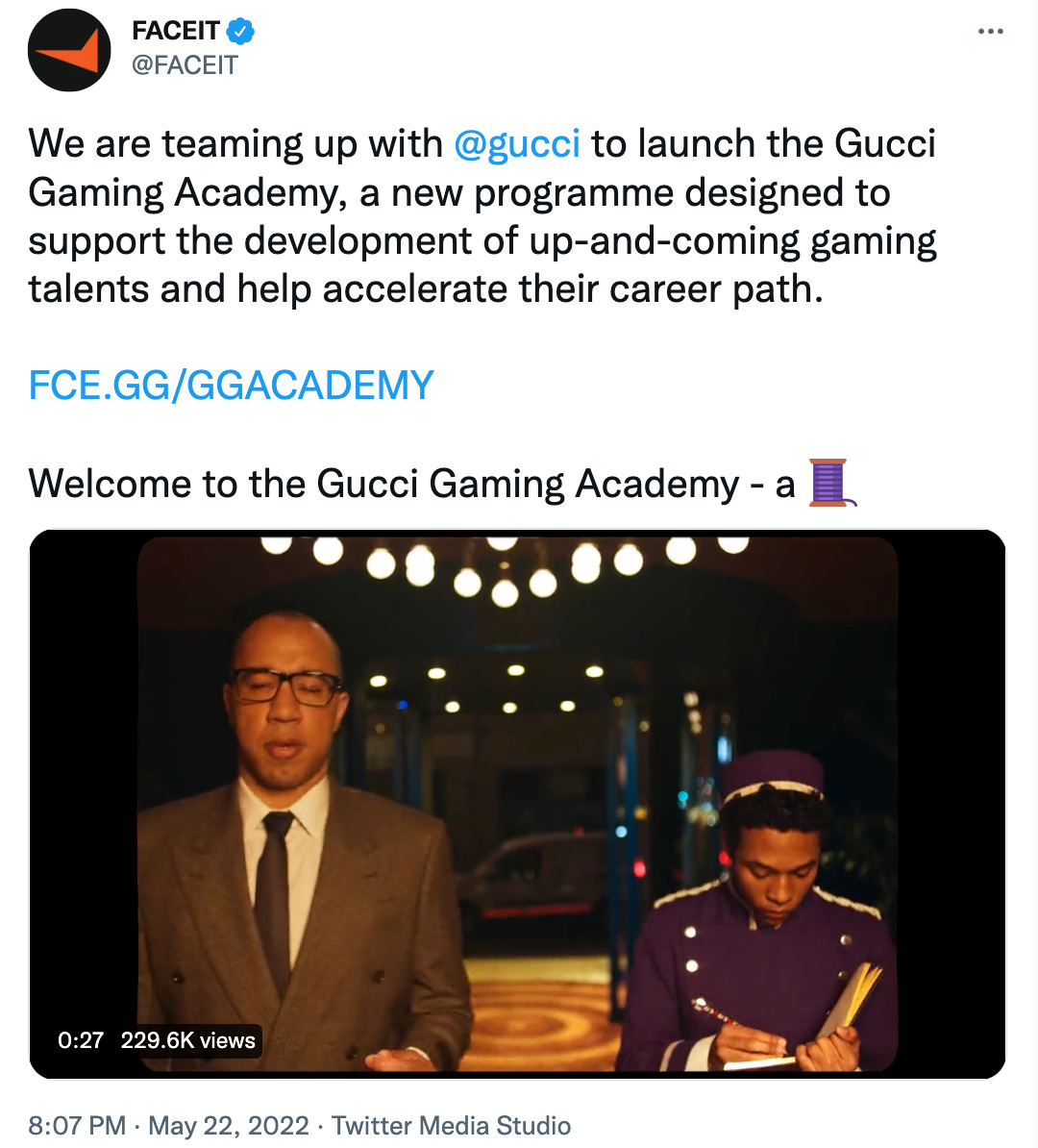 More, Gucci. Gucci establishes a gaming academy in partnership with FACEIT (a competitive gaming platform for online multiplayer games). It’s clear that Gucci is focusing on the future of gaming.
