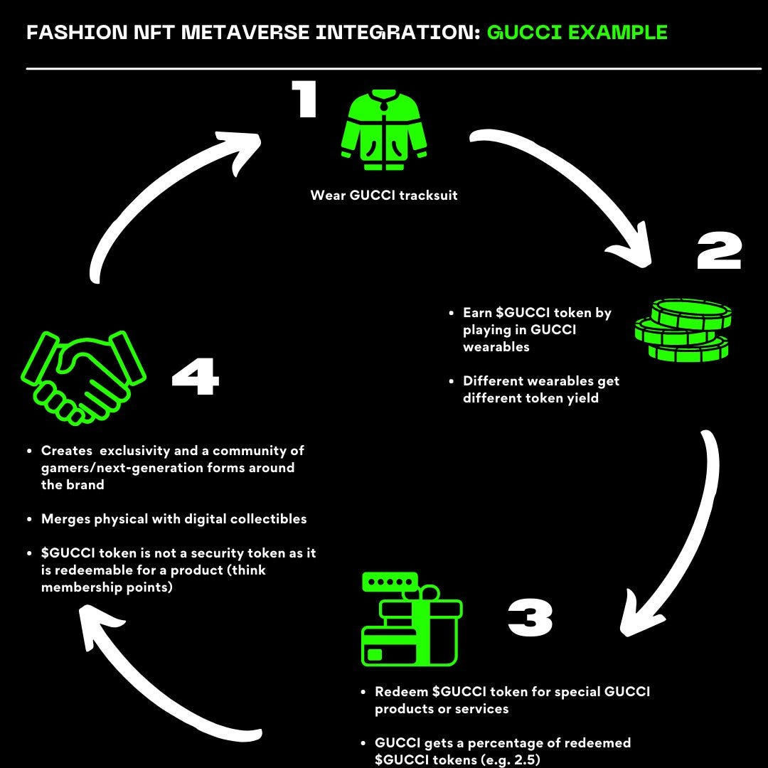 Solution: Fashion should be integrated with games, try DeFi composability and introduce a younger generation to digital fashion. As discussed in the News section, introducing clothing for flexing sake (Gucci to Roblox) is not enough for many players. There has to be a deeper reason.