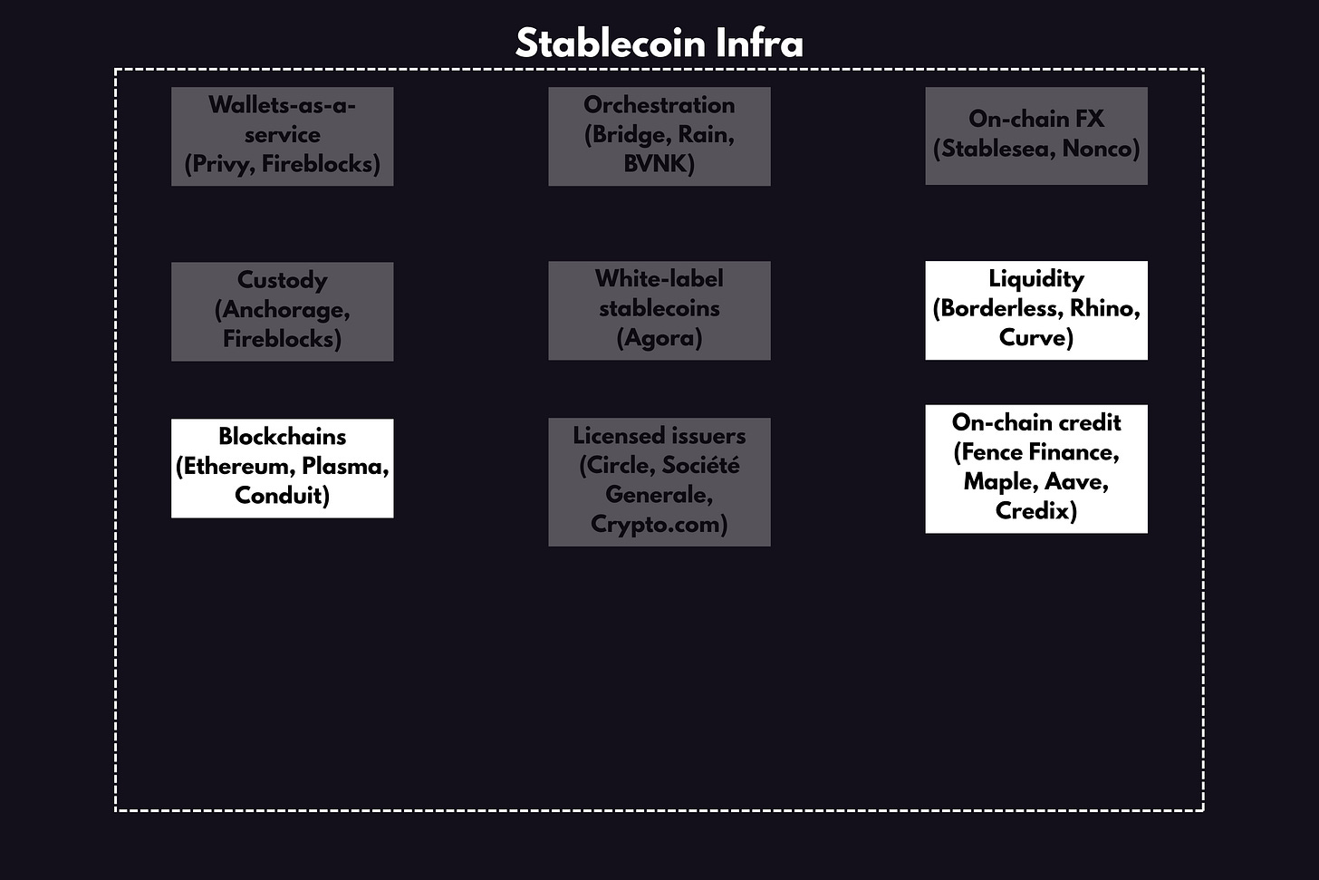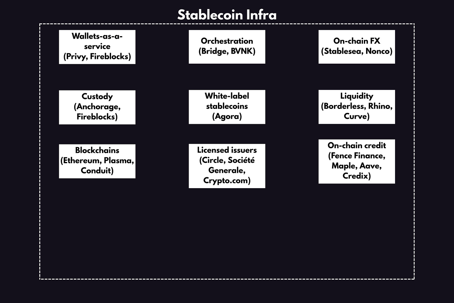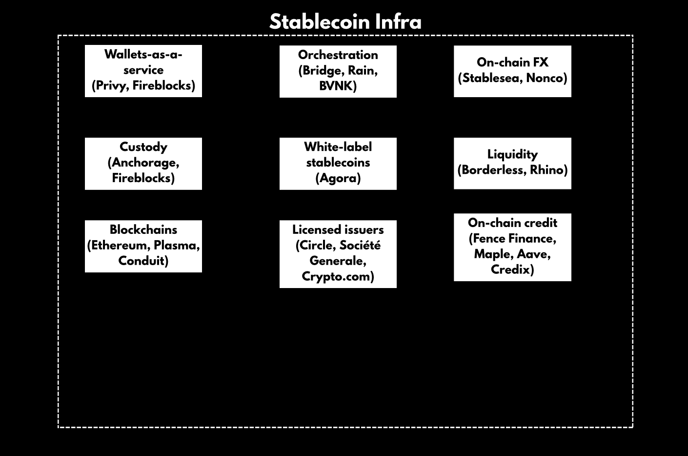 While we have some early winners already (Bridge/Stripe and BVNK), it’s still early days. If you build something better (e.g., a better stablecoin liquidity engine), the open nature of blockchains means it can be implemented by all.