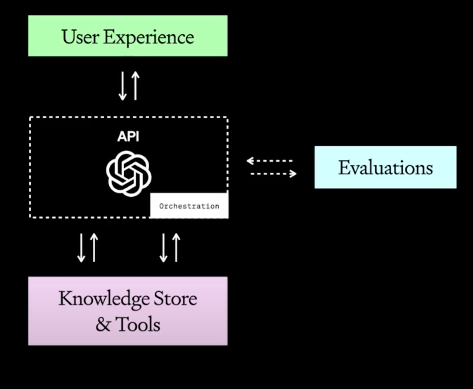 While LLMs offer surprisingly good insights out of the box when prompted correctly, they don't have access to company or person-specific private knowledge. This is why RAG (Retrieval-Augmented Generation) is used. In the visual below, it's part of the "Knowledge Store & Tools."