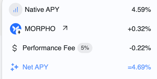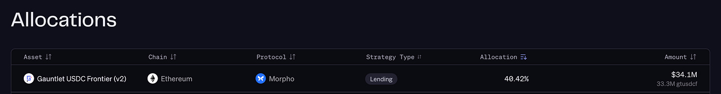 These same protocol incentives, particularly from newer protocols, are often used to subsidize stablecoin and curator yields. A clear example is Gauntlet’s USDC Frontier vault, where roughly 0.32% of the yield comes directly from Morpho incentives layered on top of base lending returns.