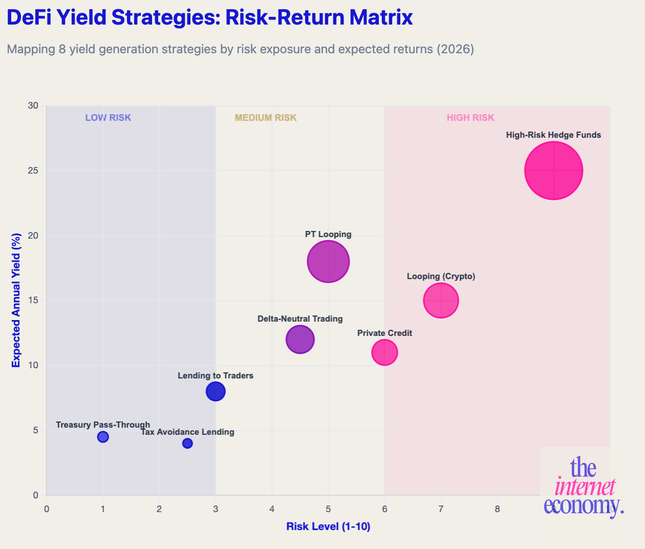 This is why lower-risk strategies like plain lending, treasury pass-through, and unlevered staking, consistently offer lower returns when used in isolation.
