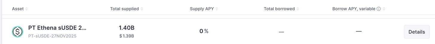 Instead of posting ETH or BTC as collateral, users can now post fixed-yield stablecoin instruments (such as PT-sUSDe) to borrow. Because these assets exhibit lower volatility, lending markets typically allow higher LTVs, often around 90%.