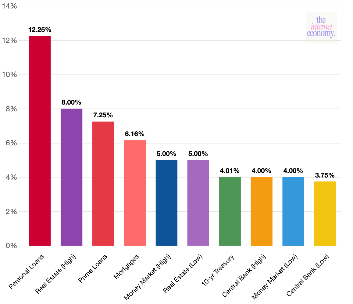 Illiquidity and balance-sheet risk push yields higher. Private credit, structured products, and hedge-fund-like strategies compensate users for locking capital, absorbing volatility, or warehousing tail risk.