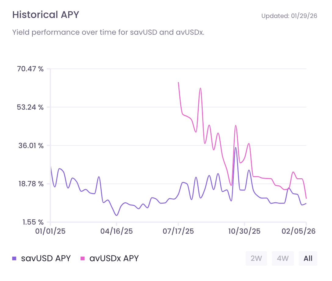 Avant’s savUSD earns yield through actively managed, market-neutral strategies including basis trades and lending rate arbitrage.